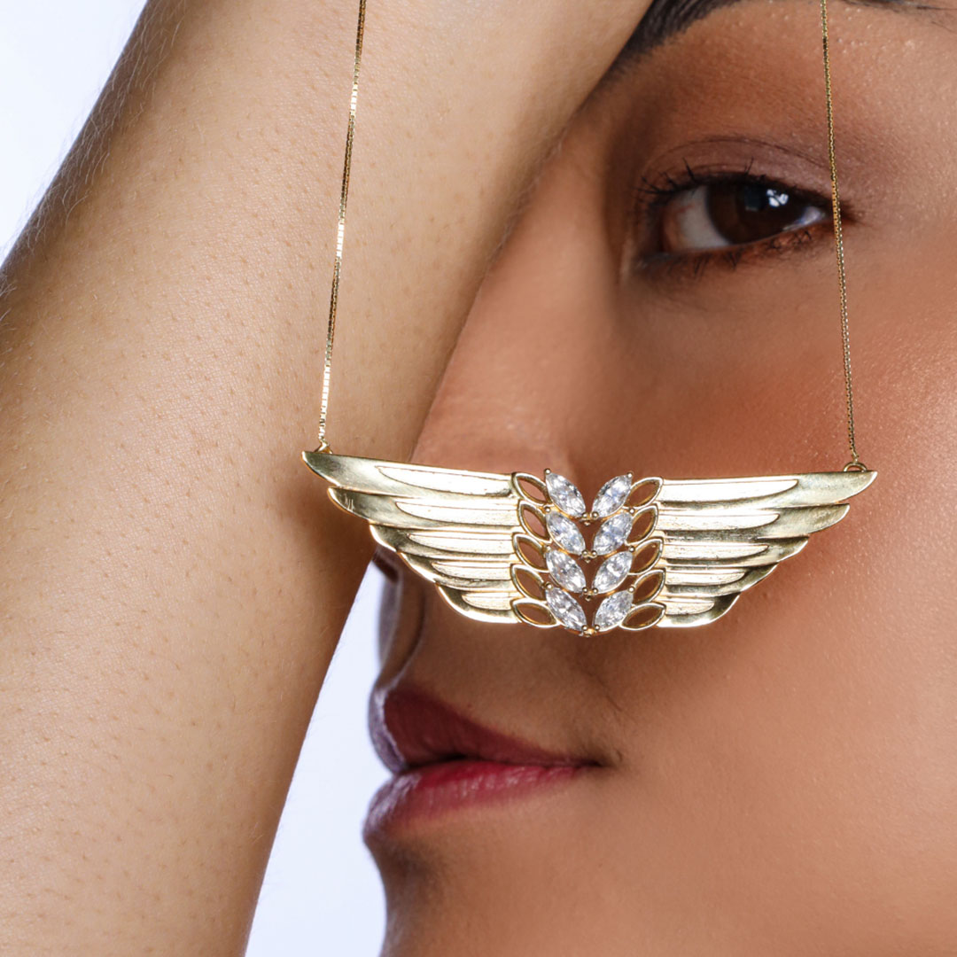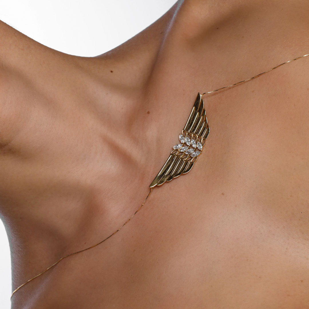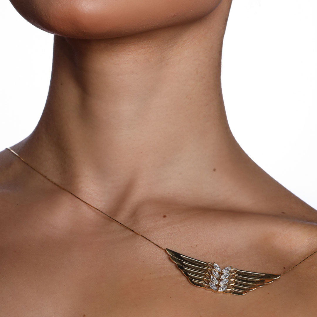 COLAR ASA CLEOPATRA – 8 DIAMANTES NAVETE 6.0X3.0MM – 7,70G OURO AMARELO 18K – QUILATE 1,20CT